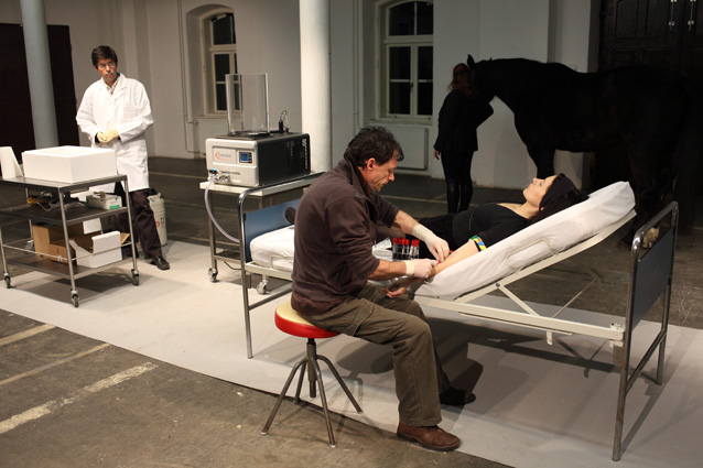 The artistic partnership of Marion Laval-Jeantet and Benoit Mangin (aka Art Oriente Objet) began in Paris in 1991. From the beginning their output has included installation, performance, video, and photography dealing with the various themes around Life. This approach is inclusive enough to have led their work into the domains of biology, behavioral sciences (their work in psychology and ethology introduced a strong animal presence), ecology, and ethnology leading to poetic and surprising art that is both visionary and political.