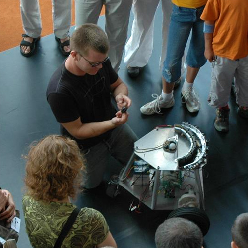 Garnet Hertz is an artist, maker, builder, and theorist whose work explores themes of DIY culture, technological progress, creativity, innovation and interdisciplinarity. Hertz is Artist in Residence and Research Scientist in Informatics at UC Irvine, faculty in the Media Design Program at Art Center College of Design, and Assistant Director of the EVOKE Lab at UCI. He has shown his work at several notable international venues in thirteen countries including SIGGRAPH, Ars Electronica, and DEAF and was awarded the 2008 Oscar Signorini Award in robotic art. He is founder and director of Dorkbot SoCal, a monthly Los Angeles-based lecture series on DIY culture, electronic art and design. His research is widely cited in academic publications, and popular press on his work has disseminated through 25 countries including The New York Times, Wired, The Washington Post, NPR, USA Today, NBC, CBS, TV Tokyo and CNN Headline News.